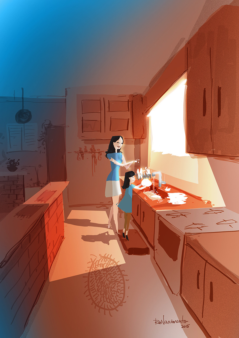 Lavando louça com a mamãe